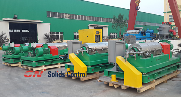該項目主要包括6臺GNLW363BG-VFD型臥螺式沉降高速離心機和3臺GNCD930C-VFD型立式巖屑甩干器。新版的GNLW363BG-VFD型臥螺式沉降高速離心機專門針對廢漿密度大、固相含量高等特點,通過優化離心機轉鼓部分的結構,極大的加強了離心機的處理量并增強了排出固相的干燥度。