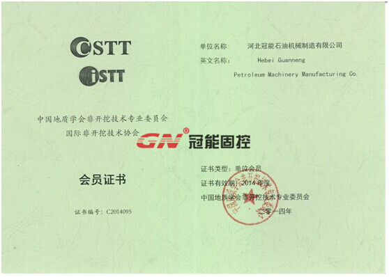 熱烈祝賀河北冠能成功加入CSTT會員,CSTT-中國地質學會非開挖技術專業委員會正式成立于1998年,同年加盟國際非開挖技術協會(ISTT),是我國成為26個國際會員國之一。目前協會掛靠于國土資源部,并得到科技部和建設部的大力支持。中國地質學會非開挖技術專業委是我國在全國開展非開挖技術活動的合法民間組織,并相繼協助成立了北京、上海和廣東等地方性非開挖技術協會。